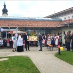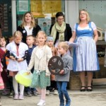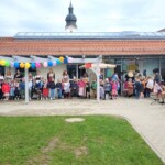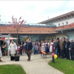 Nach einem von Kindergartenkindern mitgestalteten Gottesdienst in der benachbarten Pfarrkirche zog ein langer Festzug durch den Ort zum Kinderhaus. Dort erhielt dann der neue Erweiterungsbau für eine Krippengruppe noch den kirchlichen Segen.