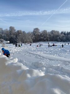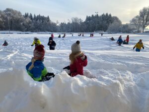 Zwei Schulstunden lang wurde gerollt, gelacht und gespielt. „Dieses Winterwunderland mussten wir unbedingt ausnutzen“, so Lehrerin Elisabeth Pick und sie fügt an „die Kinder hatten so viel Spaß zusammen“.