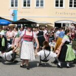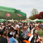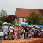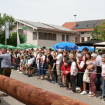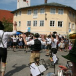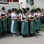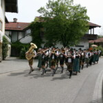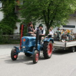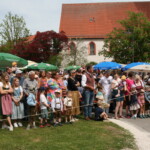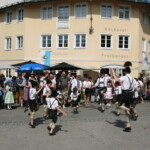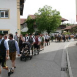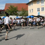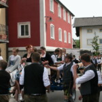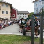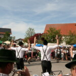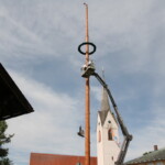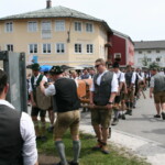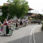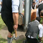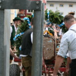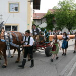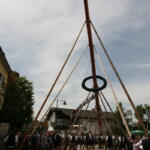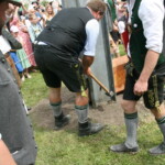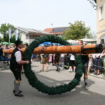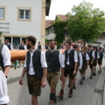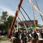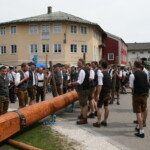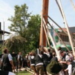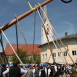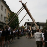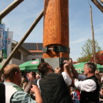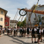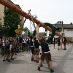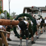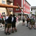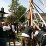 In prächtiger Tracht waren alle Beteiligten und viele Besucher gekommen. Angeführt von der Ameranger Dorfmusik wurde der Maibaum mit einem Pferdegespann gemeinsam zum Ortskern gebracht. Meter für Meter, später Zentimeter für Zentimeter wurde das Brauchtumsstangerl traditionell mit Schwaiberl in die Senkrechte gestemmt. Mehrere Stunden lang dauerte das Spektakel bei gutem Sonnenwetter. Während des Aufstellens gab es Kaffee und Kuchen, Gegrilltes und Süffiges beim geselligen Feiern am Dorfplatz.