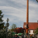 Der neue Maibaum steht in der Ameranger Dorfmitte