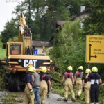 Der Schwerpunkt der Einsätze nach dem schweren Unwetter heute Mittag liegt derzeit in den Gemeinden Halfing, Amerang, Höslwang und Söchtenau. In Halfing wurden durch den orkanartigen Sturm die Dächer mehrerer Gebäude abgedeckt. Auch der Kirchturm wurde stark beschädigt und ist möglicherweise einsturzgefährdet. Ein Statiker ist bereits vor Ort. Ein benachbarter Kindergarten wurde inzwischen evakuiert. Aus diesem Grund wurde die Ortsdurchfahrt gesperrt. Bürgerinnen und Bürger werden gebeten in ihren Häusern zu bleiben und den Ortskern von Halfing großräumig zu meiden. Außerdem liefen mehrere Keller mit Wasser voll.