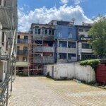 Doch die Fassade der Vorderfront, aber auch im Rückgebäude, zeigt eindeutige Spuren von der Verwüstung, die das Feuer mit sich brachte.