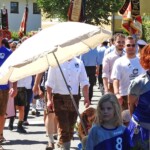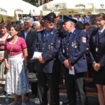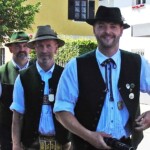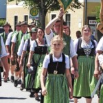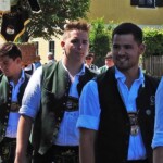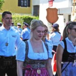 Foto unten: Ja, wer is jetzt des? Das ist auch eine Pfaffinger Feuerwehr, die im Festzug mitmarschierte und gerne mitfeierte. Kameraden in bester Freundschaft aus dem namensgleichen Ort im Bezirk Vöcklaburg in Oberösterreich – sie scheuten die weiteste Anreise nicht.