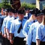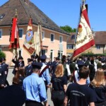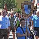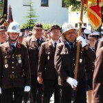 Nach dem Gottesdienst, den Pfarrer Josef Huber auf dem Kirchplatz zelebriert hatte, schlängelte sich ein riesenlanger Festzug mit insgesamt 60 Feuerwehren und Ortsvereinen durch das Dorf – begleitet von drei Musikkapellen.