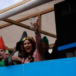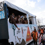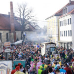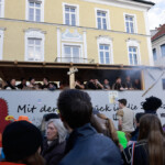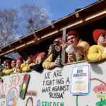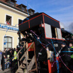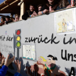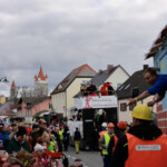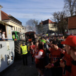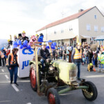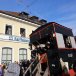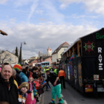Viele Faschingswagen auf der Zugstrecke und tausende Besucher am Straßenrand