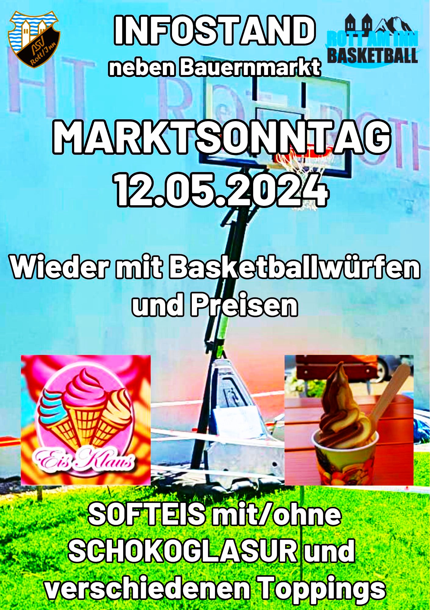 So kommt auch diesen Marktsonntag der Erlös aus dem Verkauf beim Benefiz-Eis-Stand der Basketballer – vom Eis-Klaus aus Pfaffing – den Jugend-Teams zugute. Zudem wird es wieder einen Basketballkorb beim Markt geben und es können kleine Preise quasi erworfen werden.
