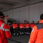 Anschließend ging es für die Einsatzkräfte zunächst zum Schnelltest und danach in die Fahrzeughalle, wo sie durch den Bereitschaftsleiter Florian Ferschmann und den Stellvertretenden Kreisbereitschaftsleiter Valentin Clemente begrüßt und in die Lage eingewiesen wurden. Auch gab es eine kurze Schulung zum Verhalten in einem geschlossenen Verband, wie die Kolonne in der Straßenverkehrsordnung genannt wird.