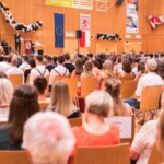 Zunächst zelebrierten Pfarrvikar Georg Böckl-Bichler und Pfarrer Peter Peischl einen liebevoll gestalteten Gottesdienst entsprechend des Mottos „Auf jeder Welle kann man surfen“. Wie die Jünger in der Bibel, so hatte vielleicht auch mancher Schüler öfters das Gefühl, bald unterzugehen, aber dann rettende Hilfe erfahren. Die Instrumentalisten und der Schüler-Lehrer-Chor griffen das Motto in einfühlsamen Musikbeiträgen auf.