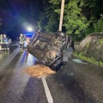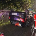 Auf die Salzburger Straße in Wasserburg musste gestern die Feuerwehr, die Polizei und der Rettungsdienst ausrücken. Gegen 23 Uhr hatte sich auf Höhe des Wuhrtals ein Unfall ereignet. Eine Pkw-Fahrerin war mit ihrem Kleinwagen von der Straße abgekommen und auf den unteren Rand einer Mauer gefahren. Das Auto überschlug sich und landete auf dem Dach. Die Fahrerin wurde dabei verletzt. Wie an der Unfallstelle zu vernehmen war, war die Frau offenbar alkoholisiert. Polizeibericht folgt. Fotos: Georg Barth