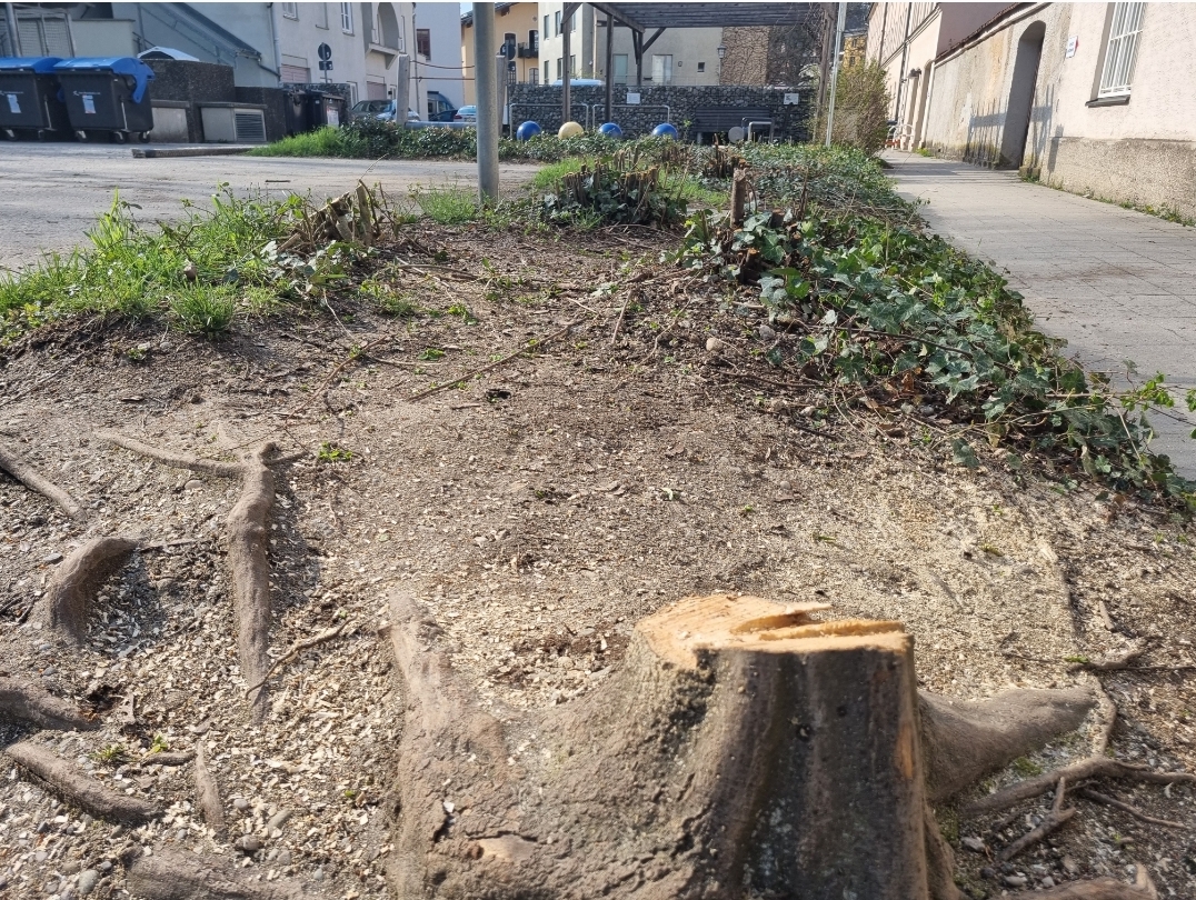 Am hinteren Bereich des Palmano-Spielplatzes wurden Büsche entfernt - Bald beginnen dort Erweiterungsarbeiten