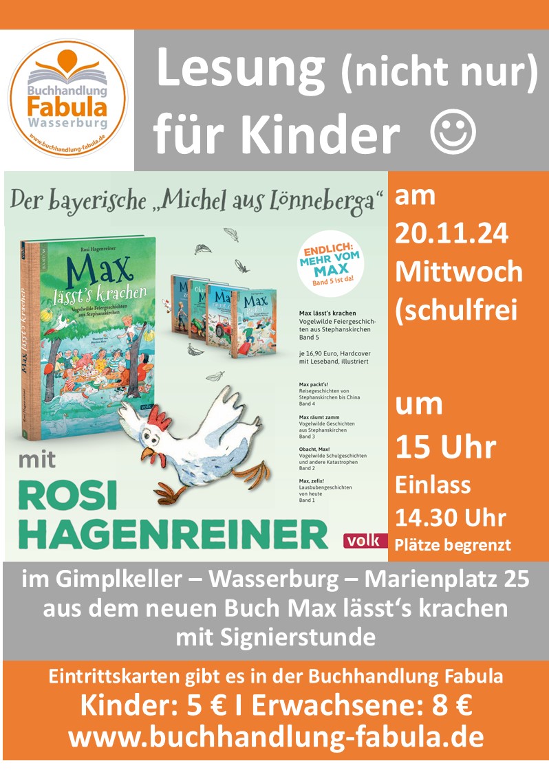 Rosi Hagenreiner ist in der Buchhandlung Fabula in Wasserburg zu Gast - Veranstaltung für Groß und Klein