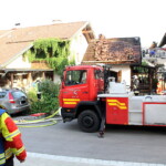 Der Dachstuhl und das Vordach der Garage hatten bereits Feuer gefangen, als die Einsatzkräfte eintrafen. Durch den schnellen Löschangriff der ortsansässigen Freiwilligen Feuerwehr Gars konnte ein Ausbreiten des Brandes auf unmittelbar angrenzende Wohngebäude, in denen sich noch Personen befanden, verhindert werden.