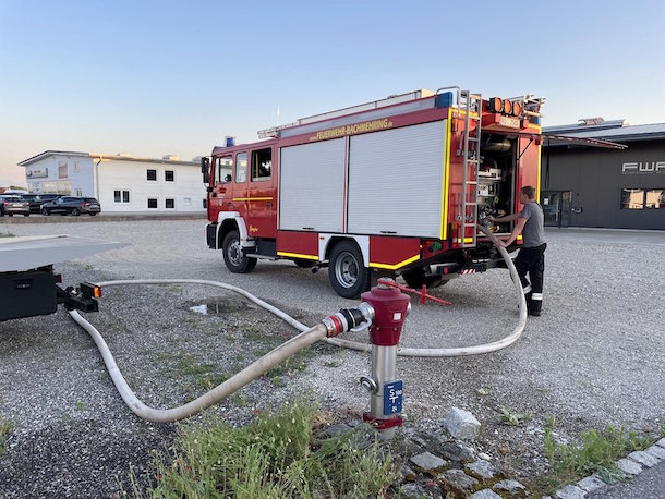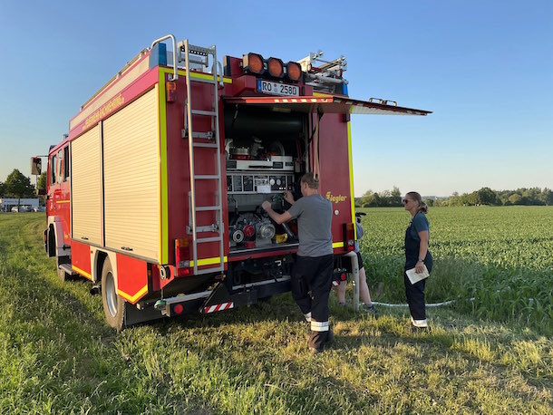 Wegen der aktuellen Hitzewelle mit extremer Trockenheit wurde die Feuerwehr Bachmehring zu einem Tierschutz-Einsatz gerufen. Laut Mitteilung des für den Gemeindebereich Eiselfing zuständigen Kiebitz-Betreuers im Nachgang zu einem Ortstermin drohten zahlreiche Küken der gefährdeten Vogelart angrenzend an das Gewerbegebiet zu verdursten. Mittels Wassertank eines Löschgruppenfahrzeugs konnten durch die Feuerwehr an den betroffenen Stellen schließlich zielgenau Ackerfurchen großflächig bewässert werden, um dem Kiebitz-Nachwuchs angesichts der weiterhin hochsommerlichen Wetterprognosen eine ausreichende Flüssigkeitsaufnahme zu ermöglichen.