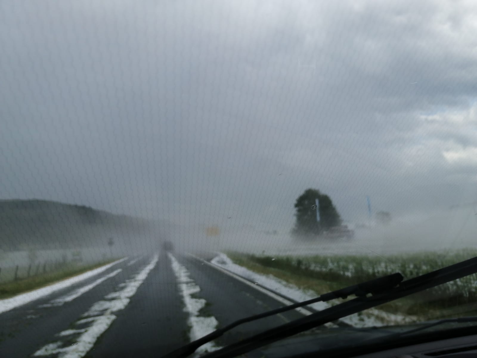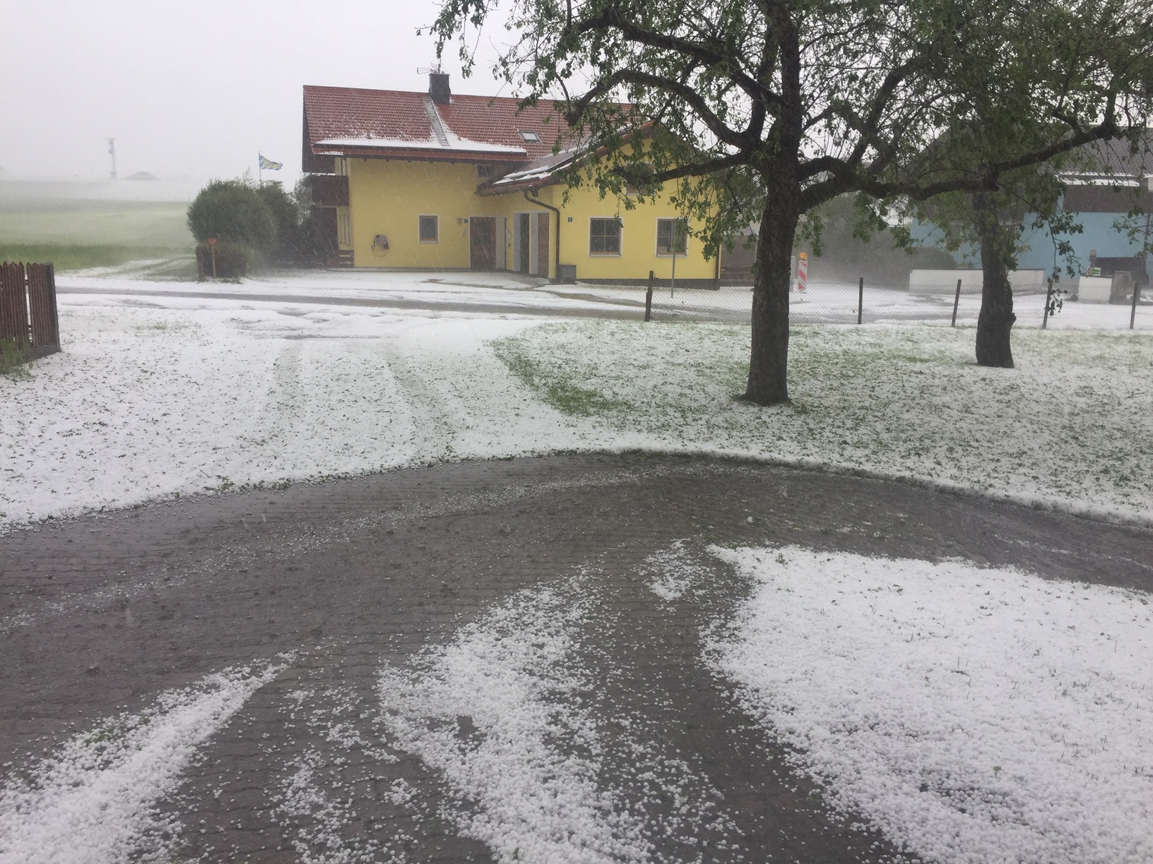 UPDATE: Extrem betroffen ist der Raum Albaching und Rechtmehring. Es schaut aus, wie im Winter – so viel Hagel kam in kürzester Zeit herunter!Die Ortsdurchfahrt von Freimehring ist komplett überschwemmt. In Albaching und Berg herrscht nun dichter Nebel wie im November.
