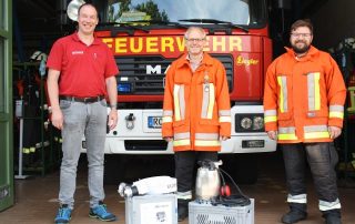 Firma Wuchterl übergibt zwei komplette Tauchpumpen-Sets als Spende an die Feuerwehr Bachmehring