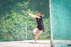 Als letzte konnte sich Luisa Schmitt (Foto unten) gleich drei Goldmedaillen bei der Siegerehrung abholen. Bei allen drei Disziplinen (Hammer 34,84m, Gewicht 19,60m, 9,05m) zeigte sie ihre Klasse und errang mit 2082 Punkten eine sehr gute Leistung im Dreikampf.
