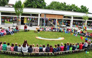 Buben und Mädchen vom Wasserburger Haus St. Jakob / St. Konrad trafen sich im Garten zu einem Sommerfest
