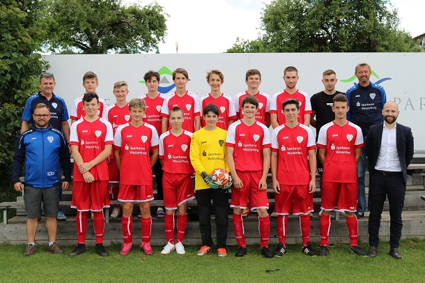 Foto: Jugendleitung und Spieler des SV Amerang sowie Ulrich Köhldorfner, Leiter der Sparkassengeschäftsstelle in Amerang.