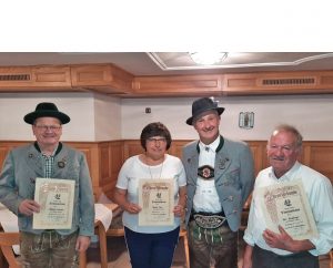 Allen voran Sebastian Lebmeier, der für stolze 50 Jahre Vereinszugehörigkeit ausgezeichnet wurde sowie Stefanie Kern (30 Jahre), Trachtler-Vorstand Hubert Mittermeier und Karl Rumpfinger (ebenfalls 30 Jahre).