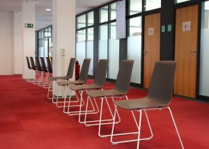 Bürger, die einen Termin haben, werden von dort direkt zum Büro des Sachbearbeiters weitergeleitet. Bürger ohne Termin nehmen im Wartebereich Platz.