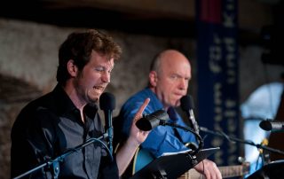 Mit dem tapferen Schneiderlein: Die beiden Schauspieler Heinz-Josef Braun und Stefan Murr wieder zu Gast im Bauernhausmuseum in Amerang