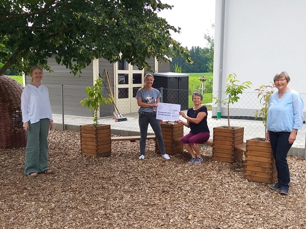 Mit dem Geld wurde ein Pflanztrog mit Sitzmöglichkeit, inklusive Obstbäume für den neugestalteten Spielegarten angeschafft. Der nächste Sommer mit einer reichen Obsternte für die Kinder kann also kommen.