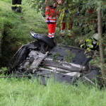 Auto landet bei Abersdorf in Bachbett - Großeltern verunglücken mit ihren Enkeln