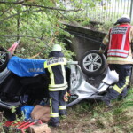 Ein 82-jähriger Steinhöringer kam kurz vor dem Ortseingang mit seinem Pkw nach rechts von der Fahrbahn ab und konnte aufgrund der leichte Böschung nicht zurück auf die Straße fahren. Anschließend fuhr der Mann gegen einen dortigen Busch und der Wagen stürzte, nachdem er an einem Brückengeländer hängengeblieben war, in den kleinen Bach (Zubringer zur Ebrach). Dort blieb der Pkw auf dem Dach liegen.