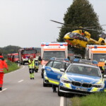 Ein schwerer Verkehrsunfall hat sich am Sonntagnachmittag in der Gemeinde Steinhöring ereignet. Ein Pkw-Fahrer kam mit seinem Wagen bei Abersdorf von der Straße ab. Das Auto landete mit dem Dach voraus in einem Bachbett. Im Auto saßen ein Mann und seine Frau sowie deren beiden Enkel. Die Beifahrerin wurde so schwer verletzt, dass sie mit einem Rettungshubschrauber in eine Klinik gebracht werden musste. Am Unfallort waren zahlreiche Einsatzkräfte. Der Polizeibericht: