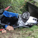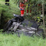 Auto landet bei Abersdorf in Bachbett - Großeltern verunglücken mit ihren Enkeln