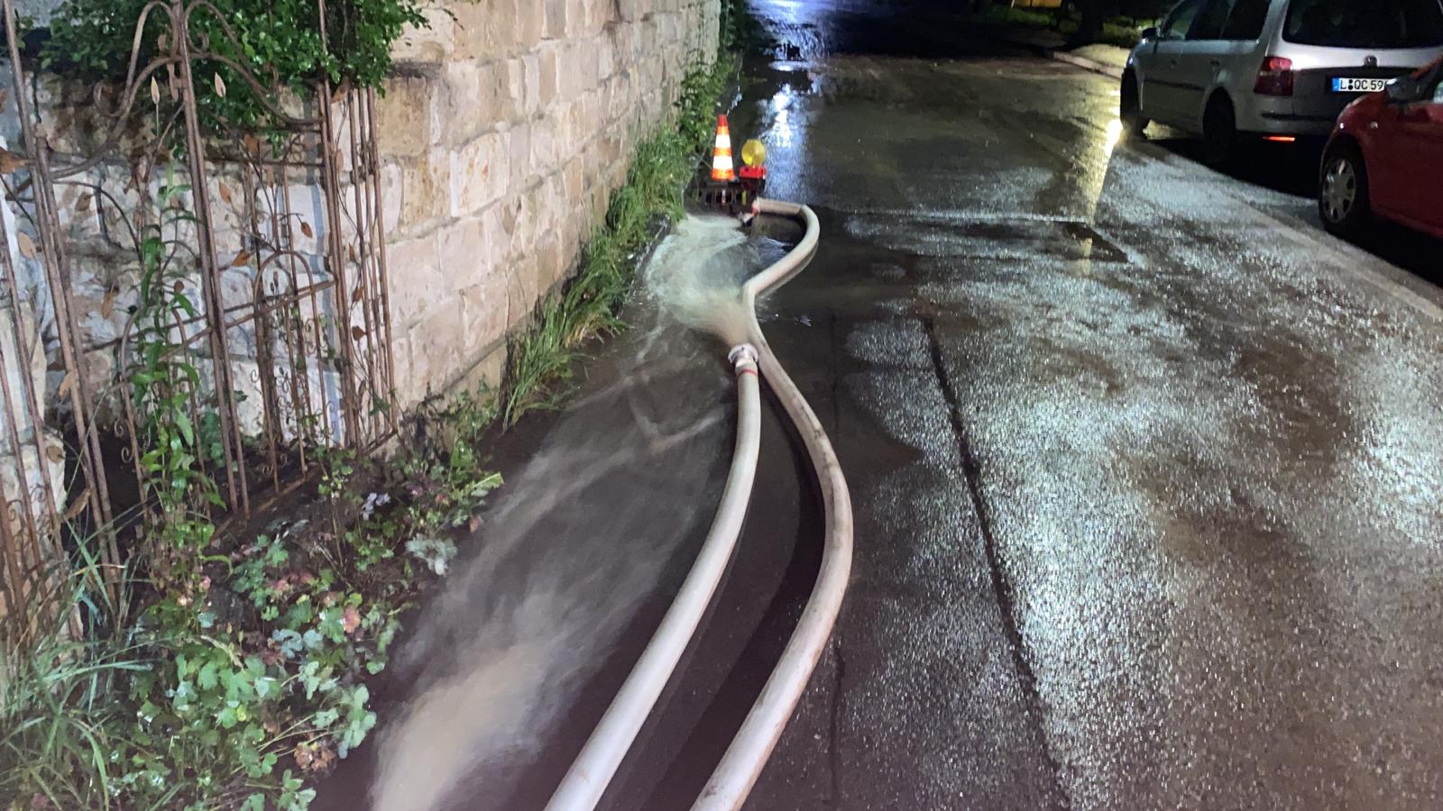 In Götting sorgte Oberflächenwasser, das vom Irschenberg herunterfloss, für volle Keller. An einer Biogasanlage sind Kräfte von THW und Feuerwehr damit beschäftigt, Wasser abzupumpen. Dort sind zwei Hochleistungspumpen im Einsatz.