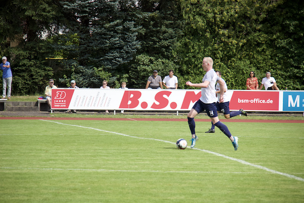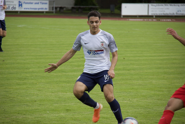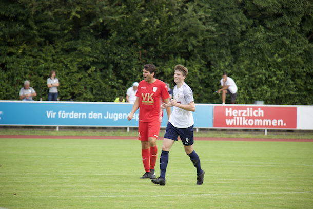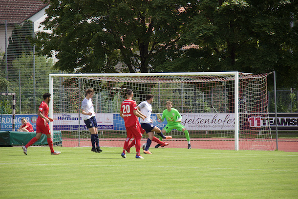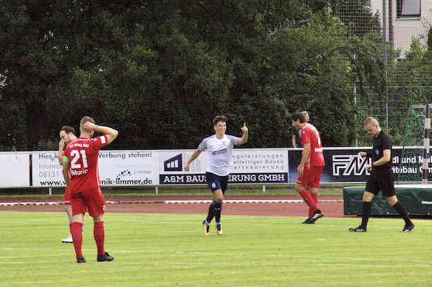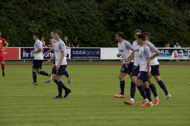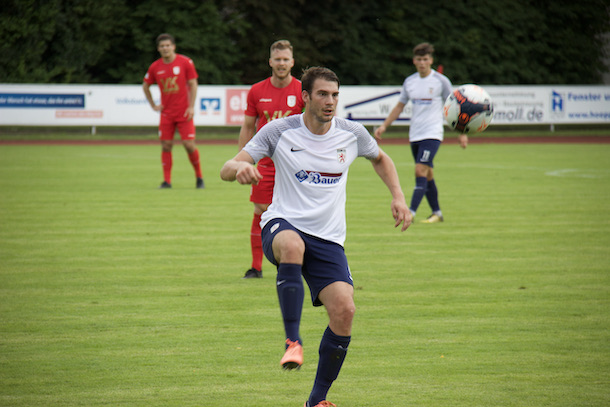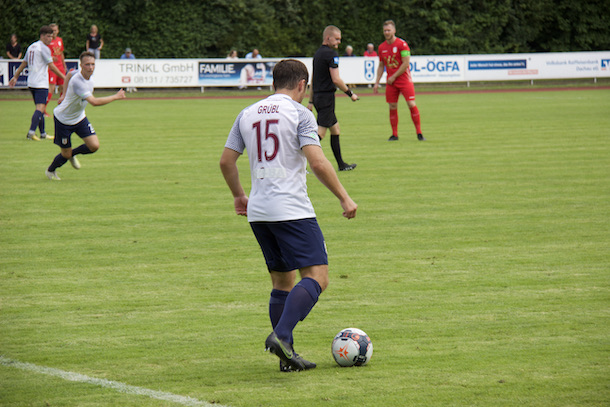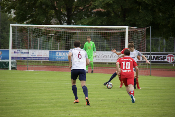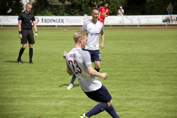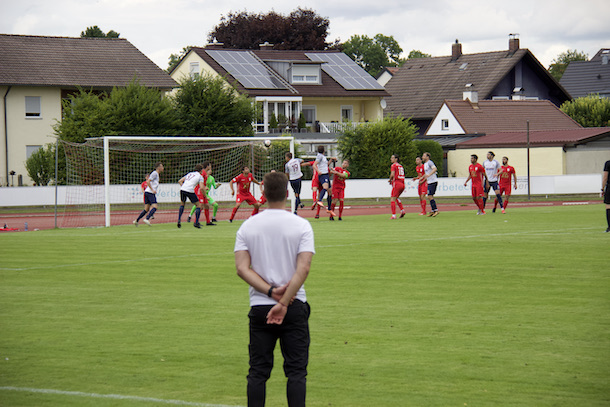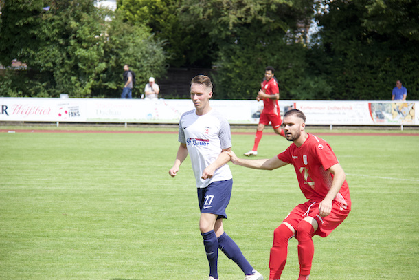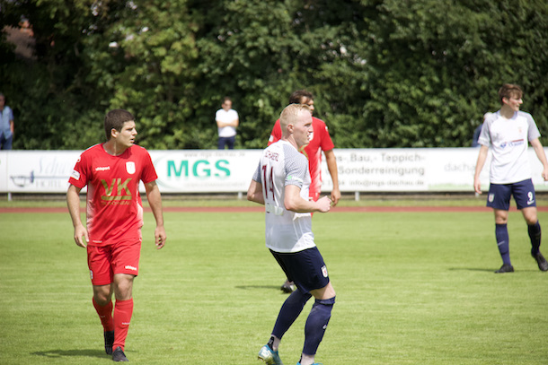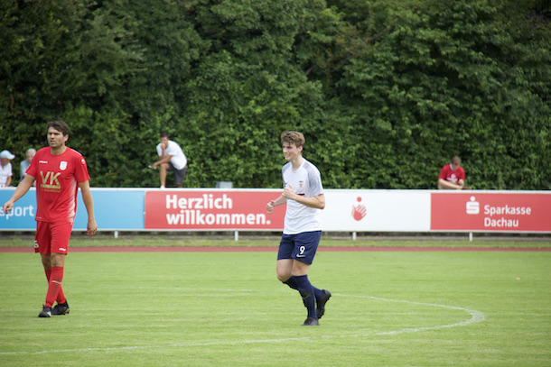 Die Wasserburger starteten gut in die Begegnung und kontrollierten die Anfangsphase. Die Sechser Robin Renger und Maxi Höhensteiger ließen sich immer wieder zwischen die Innenverteidiger fallen, um von dort aus den Spielaufbau anzukurbeln. In dieser Phase war Wasserburg überlegen, brauchte aber eine Einzelleistung, um in Führung zu gehen. Nach einem Ballgewinn im Mittelfeld wurde Daniel Kobl auf die Reise geschickt, der im Strafraum zwei Verteidiger mit unnachahmlichen Haken ins Leere laufen ließ und uneigennützig auf Leon Simeth ablegte, der nur noch einschieben musste (15.). Torschütze Simeth und die Mannschaft wussten, dass dieses Tor Kobl gehörte und liefen geschlossen zum Vorlagengeber – ein Beleg für den Wasserburger Teamgeist. Dachau investierte in der Folge mehr, wurde vor dem Tor aber nicht zwingend.