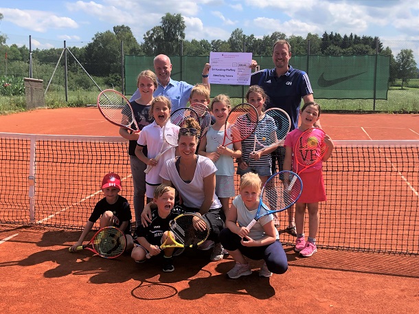 Neues Trainingsmaterial für die Tennisabteilung des SV Forsting-Pfaffing - Sparkasse Wasserburg spendet