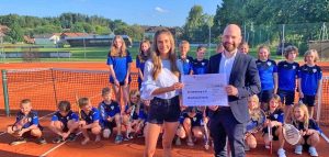 Unser Foto unten zeigt die Tennisjugend aus Amerang mit Elena Zschiesche, Jugendleiterin und Ulrich Köhldorfner, dem Leiter der Sparkassengeschäftsstelle Amerang.