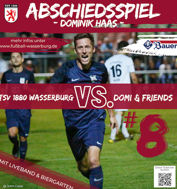 Das Abschiedsspiel, das für diesen Sonntag geplant war und wegen des schlechten Wetters um eine Woche verschoben wird, ist zugleich ein Benefizspiel. Die Einnahmen aus dem Eintritt gehen an eine von Dominik Haas ausgewählte Initiative. Damit zeigen die Innstädter einmal mehr ihr großes soziales Engagement. Um für die Zuschauer ein interessantes Spiel zu garantieren, wurde als Gegner für das Bayernligateam eine Auswahlmannschaft aus Haas’ alten Weggefährten zusammengestellt. Die Mannschaft „Domi & Friends“ besteht somit aus Akteuren, die den Amateurfußball in der Region geprägt haben, sowie ehemaligen Profis wie Robert Lechleiter und Thorsten Burkhardt, die ihr Kommen zugesagt haben.