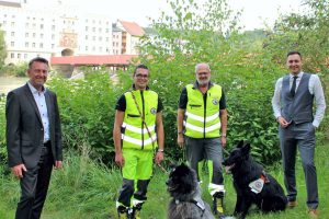 Die Sparkasse Wasserburg unterstützt den Verein bereits seit vielen Jahren bei ihrer wichtigen Aufgabe. Gerne überreichte Marketing-Chef Robert Minigshofer zusammen mit Martin Stadler, stellvertretender Leiter des Beratungszentrums, die diesjährige Spende der Sparkasse Wasserburg an Kurt Schmalwieser und Manuel Reindl von der Rettungshundestaffel Inntal e.V.