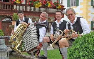 Die beliebten Vier-Hinterberger-Musikanten spielen unter freiem Himmel im Aiblinger Kurpark auf