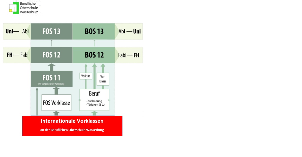 Hier bietet die Einrichtung der „Internationalen Vorklasse“ an der BO Wasserburg seit 2016 eine sehr gute Möglichkeit, sowohl Kompetenzen in der deutschen Sprache als auch in den entsprechenden prüfungsrelevanten Fächern zu erlangen. Der Unterricht wird in kleinen Lerngruppen gehalten wodurch die SchülerInnen intensiv individuell unterstützt werden können. Die Schüler werden stets aktuell über die Prüfungsanforderungen informiert, bei der Suche nach Praktikumsstellen unterstützt und auch bei den notwendigen Formalitäten, die für SchülerInnen mit sprachlichen Schwierigkeiten besonders schwer fallen, gibt es Hilfestellungen. Berufsberater und andere externe Experten aus Handwerk und Wirtschaft werden eingebunden und auch bei der Suche von Ausbildungsplätzen oder in Krisensituationen werden die jungen Menschen nicht allein gelassen.