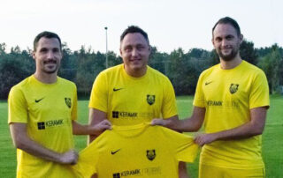 Christian Rakowsky von der Firma Keramik Design spendierte neue Aufwärm-Trikots für Edlings Fußballer