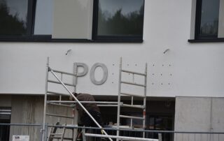 Gestern Schriftzug über dem Haupteingang der neuen Wasserburger Polizeiinspektion angebracht
