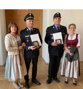 Kreisbrandinspektor Franz Hochhäuser und Kreisbrandmeister Hermann Kratz sind jetzt im Schloss Dachau mit dem „Steckkreuz“ ausgezeichnet worden. Es ist die höchste Auszeichnung für den Feuerwehrdienst, die vom Bayerischen Innenministerium vergeben werden kann. Die Ehrung fand bei einer Feierstunde mit Regierungsvizepräsidentin Sabine Kahle-Sander statt.