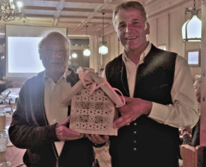 Zum Abschied aus seinem Amt erhielt der Kreisvorsitzende ein Insektenhotel (Foto).