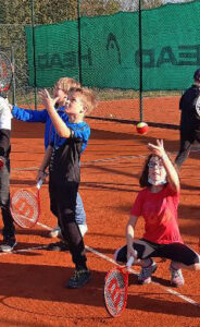 Dank der Kinderbälle, die weniger Druck haben und außerdem größer sind, konnten – nach ein paar grundlegenden Übungs- und Spielformen – bereits erste kleine Erfolge verzeichnet werden. Wer weiß? Vielleicht bleibt der eine oder die andere ja nun bei diesem Sport in der Freizeit hängen … wie sich Biggi Falter von der Fachschaft Sport durchaus vorstellen kann.