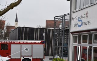 Feuerwehr Wasserburg rückt gegen 11.30 Uhr zum Klosterweg aus