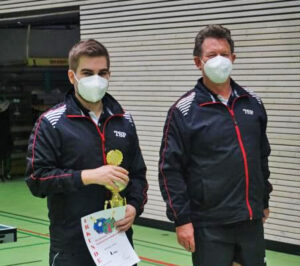 Das Foto oben zeigt Wasserburgs Tischtennis-König 2021 Markus Reitberger links mit Abteilungsleiter Franz Amann.