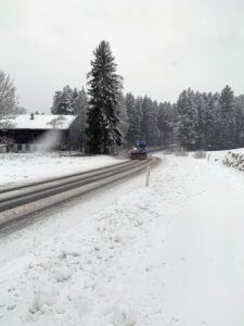 Wegen des anhaltenden, teils starken Schneefalls sind die Winterdienstfahrer der Straßenmeistereien des Staatlichen Bauamtes seit den frühen Morgenstunden unterwegs, um die Staats- und Bundesstraßen frei zu räumen. In der Region Rosenheim werden insgesamt rund 320 Kilometer Streckennetz betreut. Zwölf Räumfahrzeuge sind im Einsatz, die das Streckennetz in drei Stunden abfahren können.