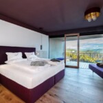 Hoch über Bozen ist nicht nur der Weitblick spektakulär, auch die preisgekrönte Architektur zieht erstaunliche Register: Denn so stark die Eindrücke rundherum sein mögen – wer in ihr wohnt, gewinnt selbst Struktur und Klarheit. Hier in Südtirols Süden erwarten schon früh im Jahr warme Sonnentage zum Auftanken oder aktiv sein. Die Natur lädt zum Wandern und Biken (mit hauseigenen E-Bikes) und kommt mit Lärchenharz-Produkten vom heimischen Salten sogar ins SPA. Oder in den hauseigenen Blumen- und Kräutergarten, der die moderne Landhausküche aus regionalen Zutaten würzt und das Haus auf natürliche Weise schmückt. Spannend als Kontrast: Die Kunstwerke, die überall im Hotel Akzente setzen und den Fokus auf die Einfachheit jedes einzelnen Objekts lenken.