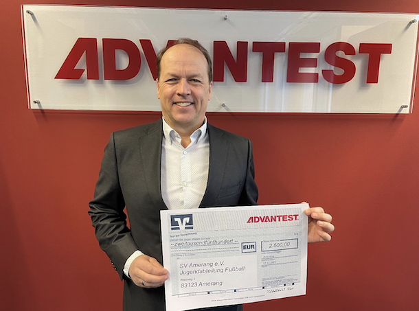 „Wir schätzen die Kinder- und Jugendarbeit des SV Amerang sehr, da Fußballspielen nicht nur Spaß macht, sondern die Gesundheit und soziale Kompetenz der jungen Kicker fördert“, so Peter Wewerka, Geschäftsführer der Advantest Europe GmbH (Foto).