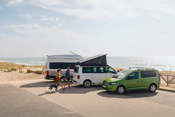 Und gemütlicher Zelten: Für noch mehr Platz und Outdoor-Feeling hat der Caddy California noch mehr zu bieten – das bei Bedarf freistehende Heckzelt mit großen Fensterbereichen ist dank Luftgestänge mit Pumpe blitzschnell aufgebaut und bietet Schlafmöglichkeiten für vier bis sechs Personen. Das Zelt ist auch abkoppelbar, wenn man eine Ausfahrt unternehmen wollen.