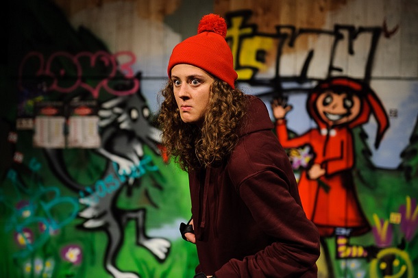 Foto: Das „Rotkäppchen“ (Rosalie Schlagheck) hat ein Problem: Ihr ist was dazwischen gekommen. Wie lässt sich das im Nachhinein bloß erklären?
